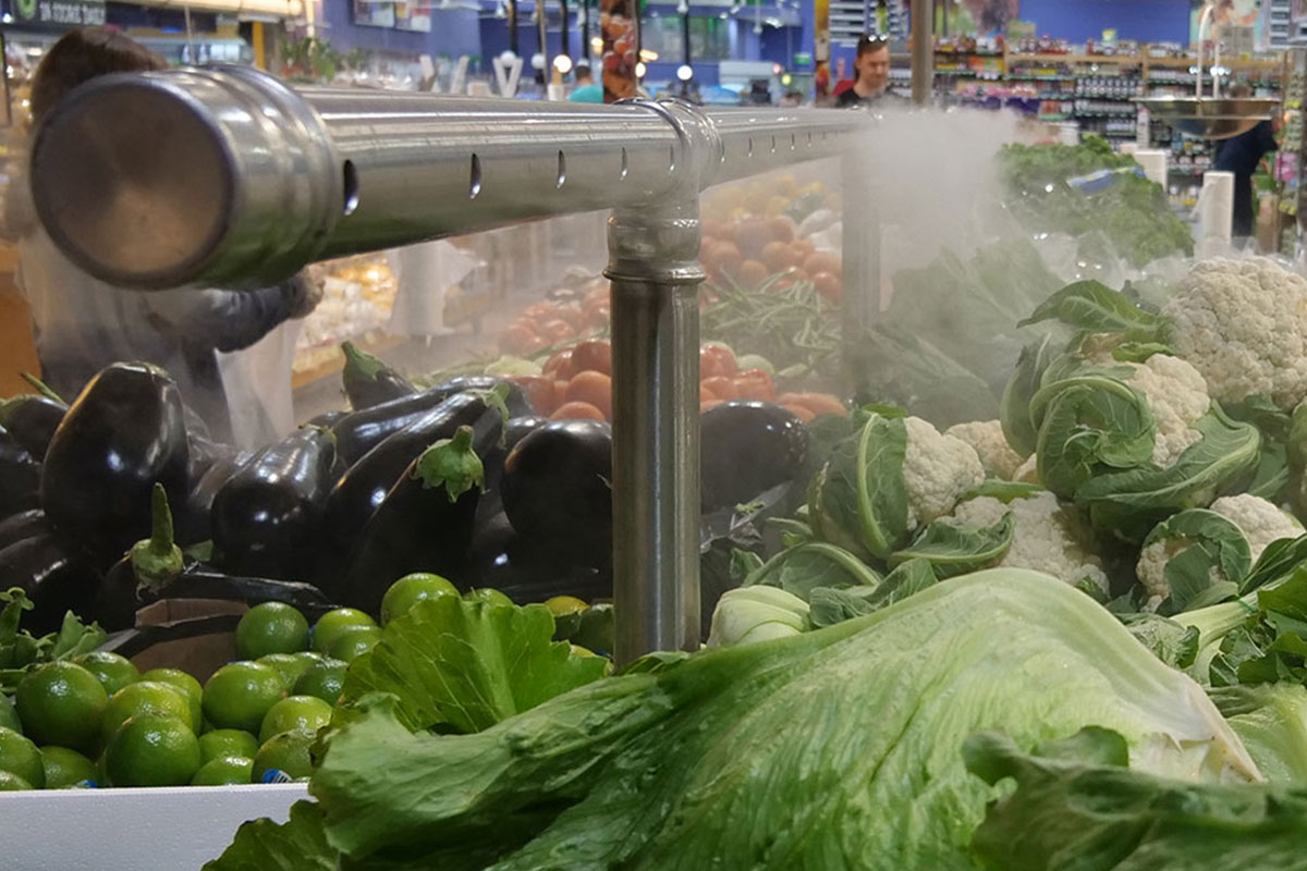 Dry Misting maintains humidity for preserving freshness, texture, and quality of perishables. It retains crispness, colour, firmness, and nutrition, enhancing visual appeal and taste. This boosts customer satisfaction and repeat purchases.