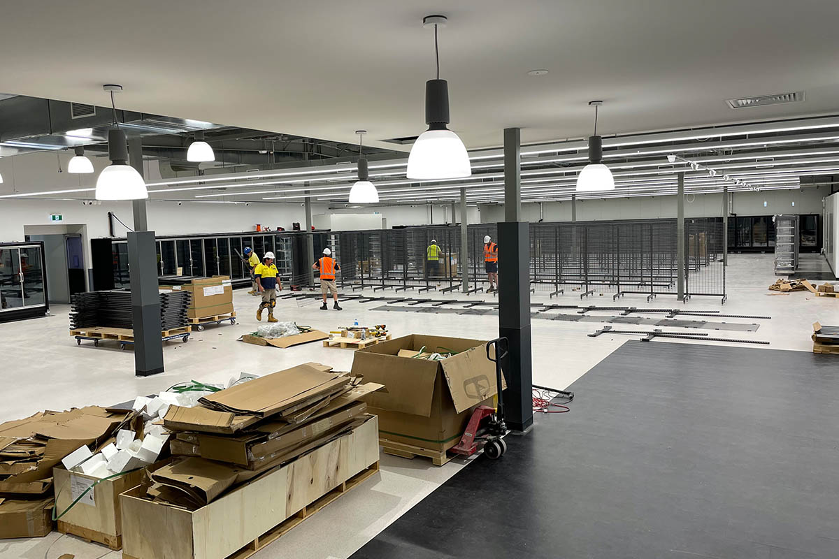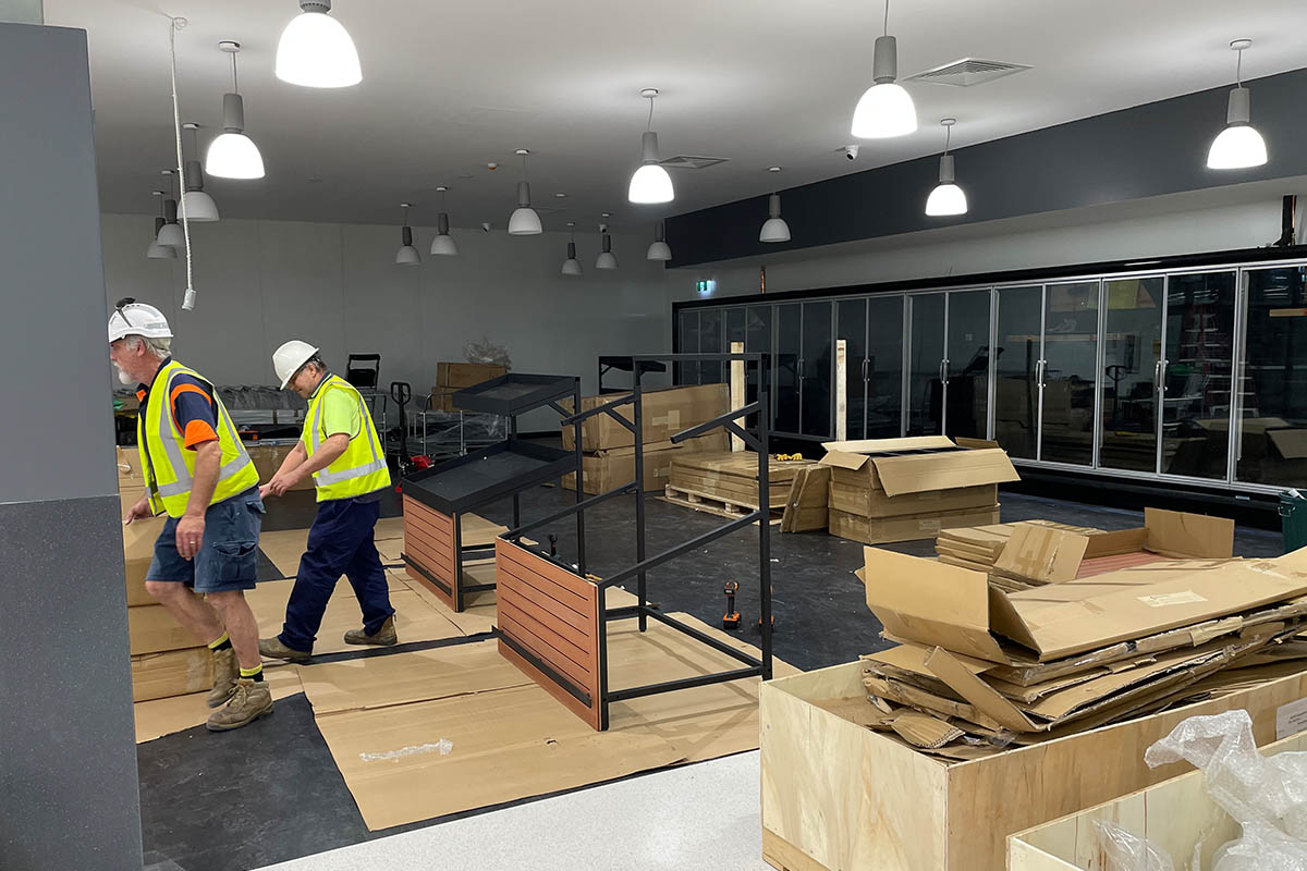 Everything that makes up the skeleton of a supermarket to stock full of products; we can supply and install. From the car park to the loading dock, entry gates, trolleys (and trolley bays), registers (both belted and express), single and double sided shelving, signage, staff room joinery and furniture, wall panels, bakery and liquor displays, display lighting, humidification systems to keep produce and seafood fresher for longer – absolutely everything! We supply it. We install it.